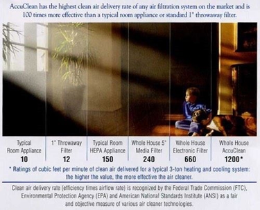 American Standard AccuClean is eight times more effective than even the best HEPA room appliance and 100 times more effective than a standard 1” throwaway filter or ionic-type room appliance.