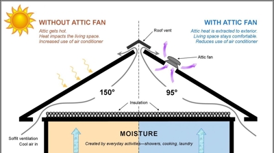 - Attic fans: If your home has an attic, putting in these exhaust fans in will remove a massive gathering area for heat that will otherwise seep down into your living areas and raise the temperature.