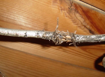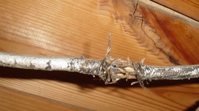 This is the type of problem we’ll discover during an inspection. We advise replacing aluminum wiring in your house—commonly used as a cheaper alternative to copper wires during the 1960s and ‘70s—because it heats up more than copper and easily corrodes at connection points. Replace any wiring that has started to lose insulation with age.